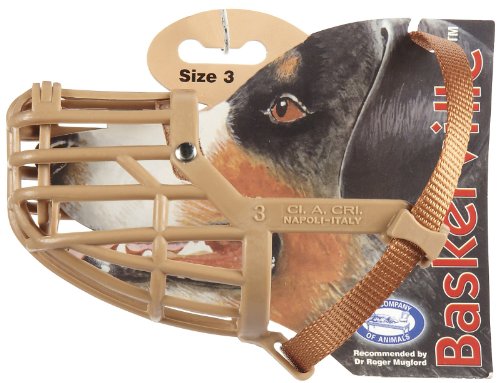 The Company Of Animals , Baskerville Ultra Muzzle is the ultimate dog muzzle! Every aspect of this basket muzzle's design has been created with the intent to combine maximum safety and comfort for your dog. It has taken four years to develop, and we believe that it was worth the wait. Safety note: While a muzzle can be very useful as a safety backup when training your aggressive dog, they can be harmful or even dangerous if your dog is repeatedly exposed to a situation which causes him to try to bite while muzzled. We strongly recommend working with an experienced positive trainer who will help you to teach your dog to be comfortable in situations that are currently making him aggressive. We also recommend that you supervise your dog at all times when he or she is wearing a muzzle. Designed by Veterinary Behaviorist, Dr. Roger Mugford, to be the most secure and comfortable muzzle available. Tough yet soft! Secure Fit with optional and removable over-the-head safety strap! Comfortable neoprene padding on the straps for comfort.